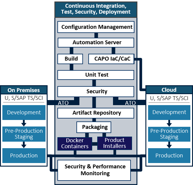 Our DevSecOps team has experience building CI/CD pipelines using proven technology and tools. We have built automated pipelines for the Air Force and Intelligence Community and tailored these tools to developer needs. Our platforms bridge on-premise test systems with secure cloud platforms. ARA’s multi-disciplinary team includes cloud engineers, security engineers, network engineers, and Tier 1-3 help desk support.