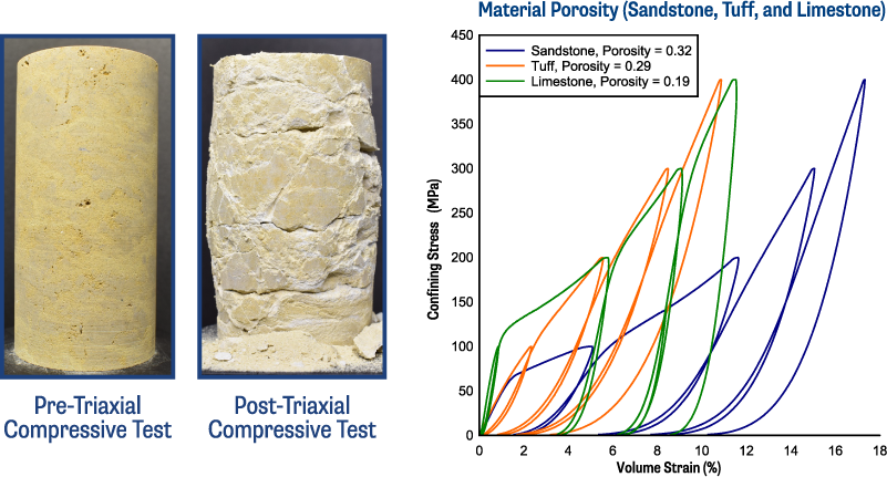 - Triaxial compression up to 400 MPa (58,000psi) confining pressure